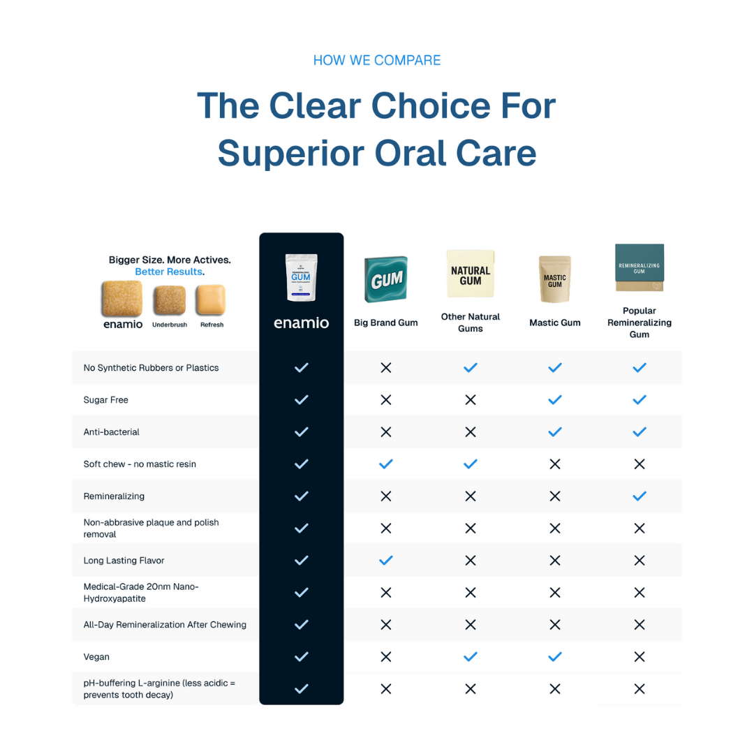 Most "natural" gums taste terrible or fall apart in your mouth. Enamio doesn't make you choose.